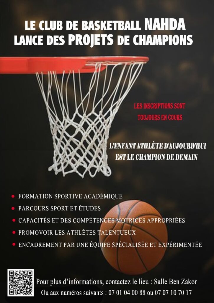 Le Club de Basketball Nahda est né d’une passion commune pour le sport, l’éducation et le développement des jeunes talents. Depuis sa création, notre objectif est clair : former des athlètes complets, sur le terrain comme dans la vie.